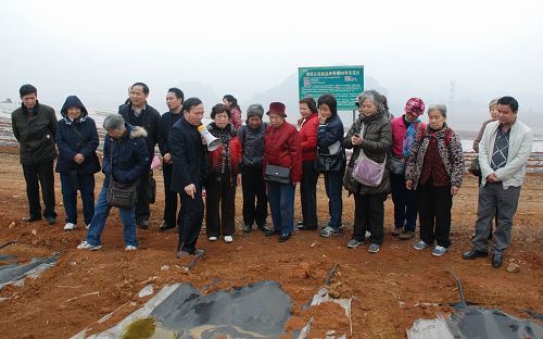 调研组在竞技宝竞猜公司孔香屯甘蔗种植示范基地实地考察调研。