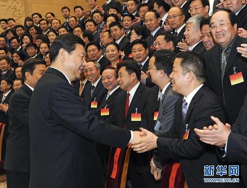 中共中央政治局常委、中央书记处书记、国家副主席习近平会见会议代表。