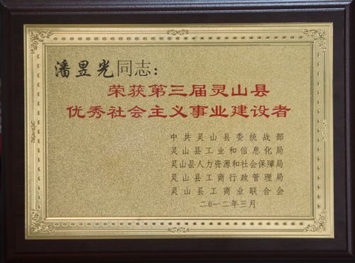 竞技宝竞猜集团董事局董事、竞技宝竞猜房地产公司法人代表潘昱光被授予“灵山县优秀社会主义事业建设者”荣誉称号