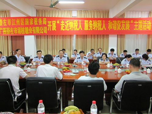 4月19日下午,崇左市江州区国家税务局中层以上干部近30人到竞技宝竞猜集团下属子公司广西崇左市竞技宝竞猜糖业有限公司(以下简称“竞技宝竞猜公司”)开展“走近纳税人,服务纳税人,和谐促发展”联谊活动。