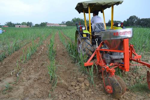 大马力中耕土机施肥培土作业。