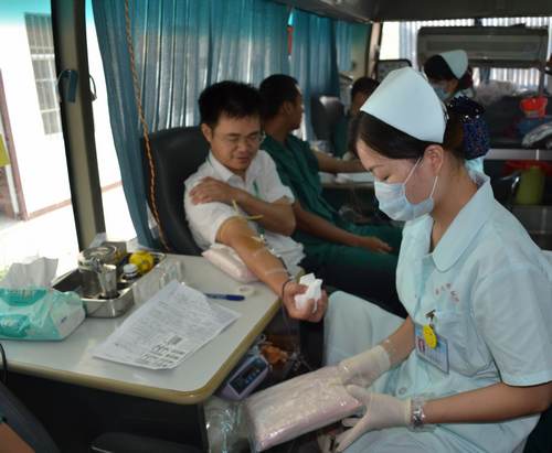 金和公司总经理罗成武(左一)献血。