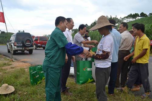 在卢世任、滕家伟等领导的带领下,志愿队伍来到了文利镇驲面村庞散路口向蔗农们赠送田间管理物资,随后还到甘蔗地帮助蔗农剥除枯蔗叶,指导蔗农为甘蔗种植后期田间管理、鼠害防治工作做好基础。尽管烈日当头,但大家热情高涨,干劲十足,活动充分调动了蔗农种好甘蔗的积极性。