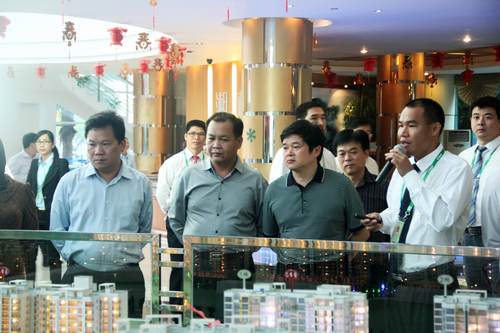考察团一行参观竞技宝竞猜•盛世名城沙盘。