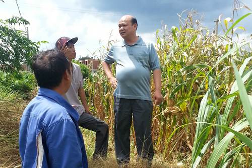 检查组丈量甘蔗种植面积。