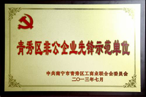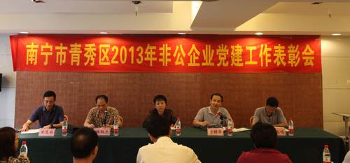 7月29日,在南宁市青秀区2013年非公企业党建工作表彰会上,竞技宝竞猜集团党委被授予“青秀区非公企业先锋示范单位”与“2013年度南宁市青秀区非公企业先进基层党组织”荣誉称号,其中刁晓、肖洁两位同志荣获“优秀党务工作者”称号,黄瑞玲、刘顺果、徐瑞芬、何远兰、张彬五位同志被授予“优秀共产党员”称号。