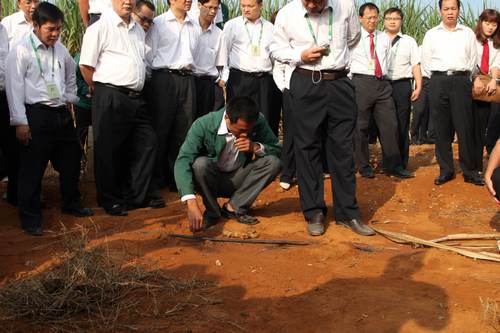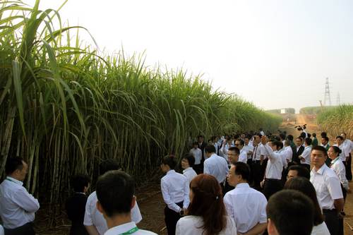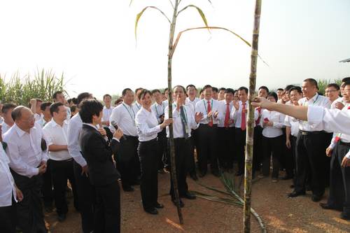 竞技宝竞猜集团2012/2013年度工作总结暨表彰大会参会人员参观孔香屯甘蔗种植示范基地