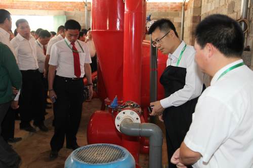 参会人员参观基地废水滴灌设备。