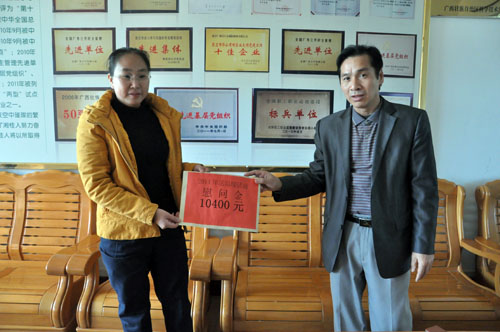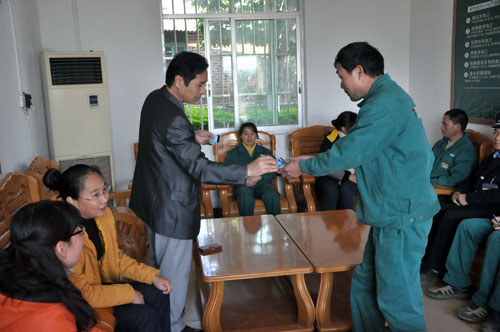 江州区总工会主席吴凌超向公司困难员工发放慰问金(银行卡)。