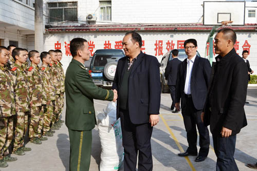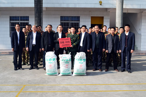 1月25日,竞技宝竞猜房地产公司、灵山竞技宝竞猜公司联合组成慰问组,对驻灵山县武警中队进行慰问,为部队官兵们送去了慰问金和慰问品,并与他们亲切交流,共叙鱼水情。