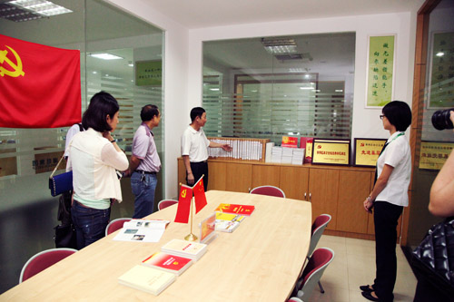 考察团参观党员活动室。