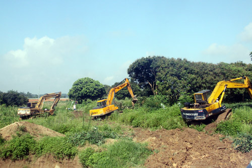 2014年7月8日上午9时,夏日骄艳、晴空万里,随着公司董事长、总经理邓豪的一声令下,竞技宝竞猜·盛天名城项目现场10多台挖掘机、推土机立刻有序开工,项目近300亩土地的清场工作全面开展。由于得到了集团公司和灵山县委、县政府、司法机关等有关部门的大力支持和现场指导、配合,当天下午18时许,清场工作便基本完成,为7月12日的项目营销中心动工建设打下了良好的基础。