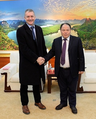 崇左市委书记、市人大常委会主任黄克亲切会见法国乐斯福大中华区总裁戴亚德。