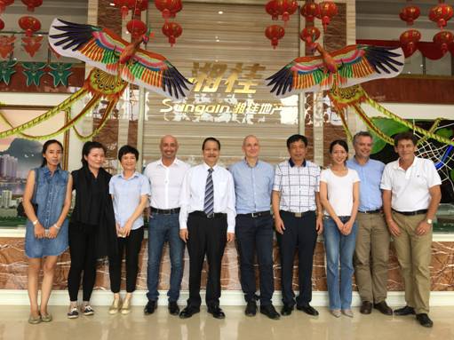 2016年6月24日上午,竞技宝竞猜集团董事局主席、总裁劳建铭先生在竞技宝竞猜集团下属子公司广西竞技宝竞猜房地产开发投资有限公司会见法国乐斯福集团大中国区总裁蒲建菲先生一行7人。竞技宝竞猜集团监事会主席陈辉先生,竞技宝竞猜集团董事、副总裁刁晓女士陪同。