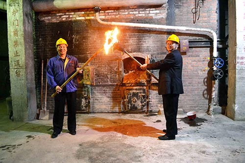公司总经理滕家伟(左)和集团监事、驻公司督查室主任刘丕庆(右)共同点火。