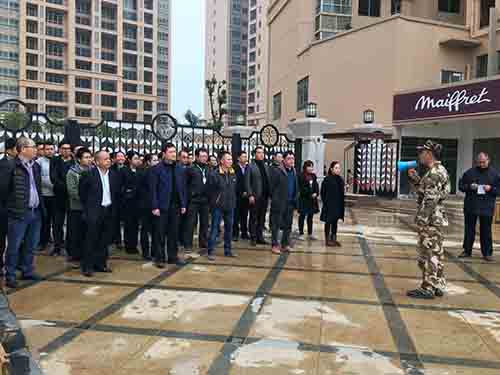 竞技宝竞猜房地产公司总经理陆儒伸、常务副总经理农柳生等公司经营管理班子成员以及100多名员工参加了此次演练活动。