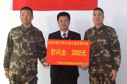 在慰问消防大队及驻武警中队的活动中,慰问组对全体官兵始终坚持把人民群众的安危放在首位表示敬意!对他们为浦北县人民生活和企业顺利生产提供安全稳定的环境表示感谢!慰问组表示,将继续加强公司内部管理,不断将公司做大做强,争取更好的效益,继续支持部队的建设!