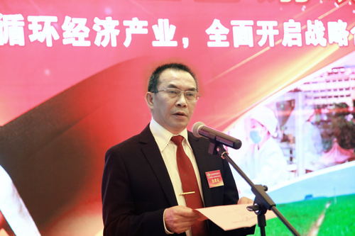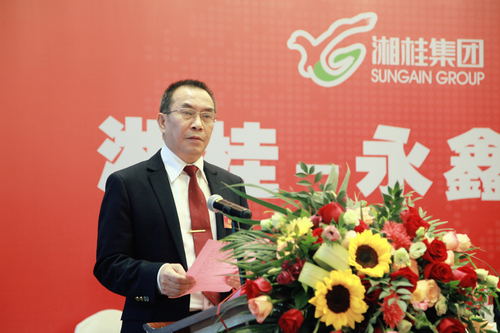 图为永鑫集团董事长、总裁谢华诚发言 。