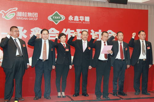 根据竞技宝竞猜集团和永鑫集团的合作战略部署,未来五年实现三个“1”的总体目标:一是两家集团的合并总产糖量达到100万吨以上;二是两家集团实现年产值达100亿元以上;三是打造一个大型的上市公司。