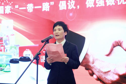 图为竞技宝竞猜集团董事、副总裁,永鑫集团董事刁晓主持竞技宝竞猜-永鑫合作研讨会暨答谢晚宴。