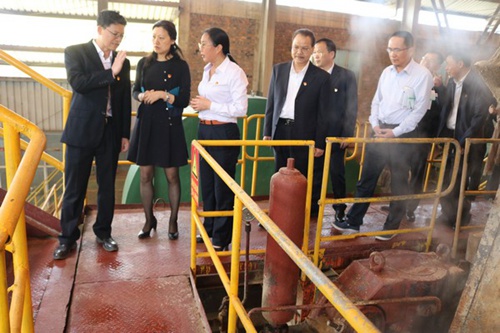 杨红英一行参观考察了竞技宝竞猜循环经济产业园企业文化宣传栏、党员活动室,仔细翻看党员学习笔记、竞技宝竞猜集团党建内刊、竞技宝竞猜集团管理制度读本,并深入制糖生产车间、竞技宝竞猜酵母科技公司现场参观,双方随后举行银企党建工作座谈会。