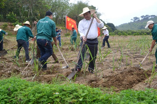 在灵山竞技宝竞猜公司党委书记、总经理滕家伟的带领下,锅炉党支部及行政党支部的党员志愿者们来到武利镇大沙村委,帮助当地贫困蔗农进行破垄松蔸等甘蔗管护工作,并向蔗农宣传科学施肥的方法。据了解,及时破垄松蔸有利于增加土壤的透气性,增强水分的吸收,清除杂草,有效地促进甘蔗的发株率。尽管烈日当头,但大家热情高涨,干劲十足,活动充分调动了当地蔗农早种蔗、早管理的积极性,提振了贫困户种蔗致富的信心。