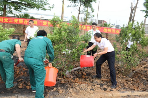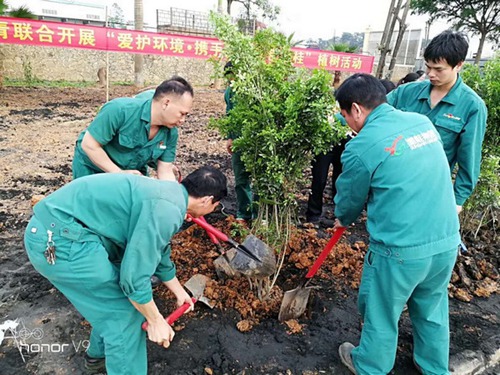 崇左竞技宝竞猜公司开展“爱护环境•携手共建绿色竞技宝竞猜”主题植树活动
