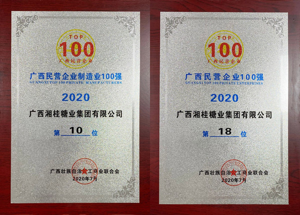竞技宝竞猜集团荣获“2020广西民营企业100强”、“2020广西民营企业制造业100强”