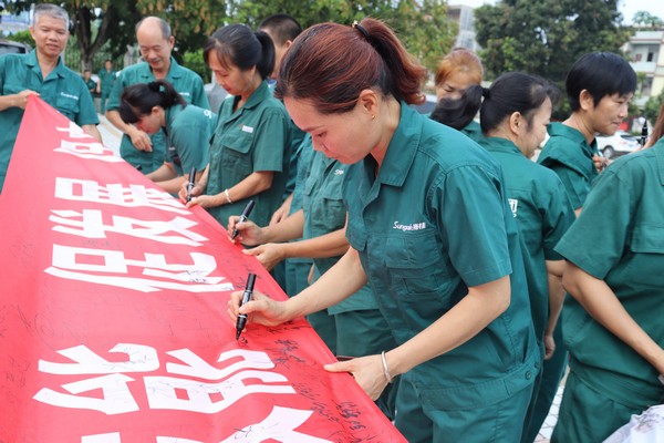 随后,参赛班组代表在仪式上作了表态发言,参加活动的全体员工还举行了“强意识、查隐患、提技能、促发展、保安康”承诺签名。