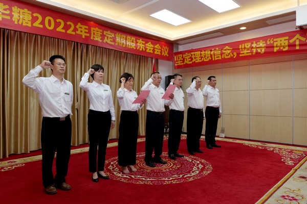 谢华诚董事长代表竞技宝竞猜华糖向一直以来关心和支持公司发展的各级党委政府、金融机构、广大客户、蔗农朋友表示衷心的感谢,向各位股东及全体员工表示诚挚的敬意。会议指出,此次董事会、监事会的换届工作在广开言路、广泛征求意见、充分酝酿的基础上,新一届董事、监事候选人经过民主推荐,具备专业化、年轻化、老中青结合的特点,换届后,公司治理结构得到优化,以老带新得到体现,为公司的持续稳健发展提供了强有力的组织保障。新的一届董事会将以降本增效为目标,做到勤勉履职,廉洁奉公,担当重任,努力为公司创造效益,不辱使命,不辜负股东和广大员工的殷切希望,团结和带领全体员工守望初心,同心同德,同向同行,坚定信心,砥砺奋进。
