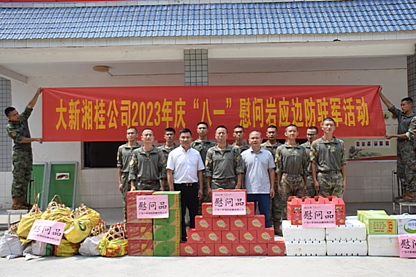 7月29日,大新竞技宝竞猜公司到硕龙镇岩应边防驻军开展慰问活动。公司副总经理凌国士对岩应边防部队对大新经济社会发展,边境社会稳定方面作出的贡献表示衷心感谢,希望今后进一步加强沟通、深化联系,共同推进军民深度融合发展,公司也将一如既往地支持部队建设,积极帮助部队官兵解决实际困难,坚持军民同心,共同为维护边境和谐稳定。边防驻军负责人表示,感谢大新竞技宝竞猜公司对部队的建设发展的支持,将以此次慰问为契机,把企业的深情厚谊转化为官兵敢打必胜的信心和动力,坚决为党和人民守好防、站好岗。