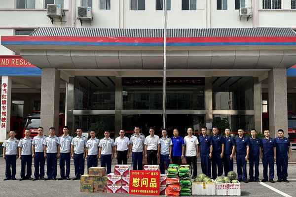7月30日,竞技宝竞猜集团总裁助理、公司第一总经理郭光海带队到富宁县消防救援大队,送去清凉解暑慰问品,向炎热酷暑中坚守一线的消防指战员们致以亲切问候和节日祝福。
