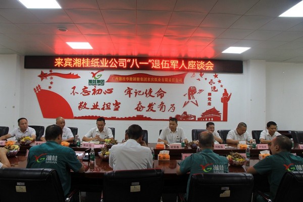 8月1日上午,来宾竞技宝竞猜纸业公司召开退伍军人座谈会。公司副总经理欧荣春代表公司向全体退伍军人致以诚挚的慰问和美好祝愿,对他们为公司发展所作的贡献表示衷心感谢,希望各位退伍军人在今后的工作中继续发扬军人吃苦耐劳,团结拼搏的精神,高标准、高质量地完成好各项工作任务。