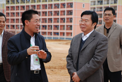 崇左市委副书记吴宇雄(右)在竞技宝竞猜公司总经理朱光彩(左)陪同下考察竞技宝竞猜公司。