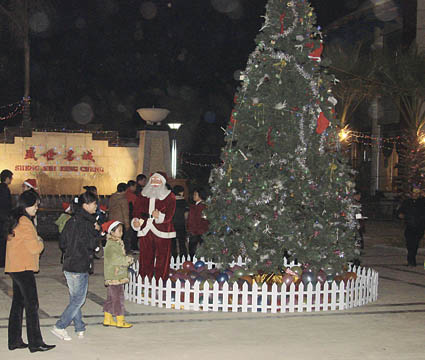 24日晚,竞技宝竞猜·盛世名城会所里里外外被装扮得流光溢彩:宽敞秀丽的喷泉广场入口摆放着一棵挂满礼物的圣诞树和一个真人般大小的圣诞老人,犹如繁星闪烁的一串串彩灯,琳琅满目的各式圣诞礼品,员工们头上亮丽可爱的圣诞帽……使彩灯映耀下的竞技宝竞猜·盛世名城,如童话世界里的城堡,处处洋溢着节日的欢乐。