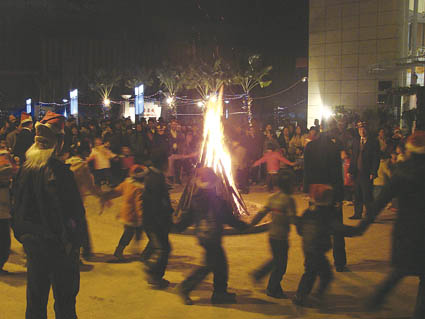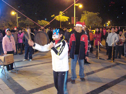 游园节目丰富多彩,有猜谜语、抛圈、蒙眼敲铜锣等。各种各样或有趣、或刺激、或充满挑战的游戏,让在场的业主和员工们玩得十分尽兴。游园活动的间隙,还有工作人员装扮的“圣诞老人”给业主们送出一份份精致的礼品。最后,工作人员在广场上点燃狂欢篝火,将整个游园活动推向最高潮。熊熊的篝火,传递着冬日的温暖,也使载歌载舞的参与者们在跳动的火光中,沉醉在充满激情、充满欢乐的平安夜里。
