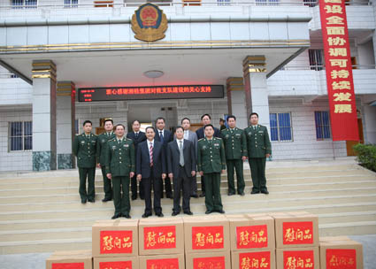 武警南宁市支队政委龙文成向竞技宝竞猜集团的慰问表示感谢,并承诺将会进一步提高武警支队队伍素质,今后武警广西总队将努力把部队建设成为政治可靠的威武之师、文明之师,把广大官兵培养成为党和人民的忠诚卫士,发扬“听党指挥、服务人民、英勇善战”的优良传统,坚决圆满完成党和人民赋予的神圣使命。