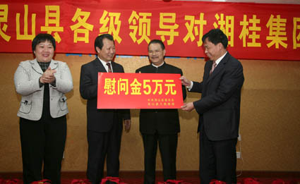 会上,李跃飞和潘雪红代表中共灵山县委、县政府向竞技宝竞猜集团赠予了慰问金。