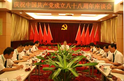 当天下午,竞技宝竞猜公司党委隆重举行庆祝中国共产党成立88周年和纪念公司党委成立一周年座谈会。竞技宝竞猜公司全体党员、入党积极分子代表和非党员中层以上领导共60多人出席了座谈会。