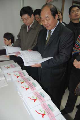 书记冯成善同志翻看竞技宝竞猜集团党委党员学习笔记。