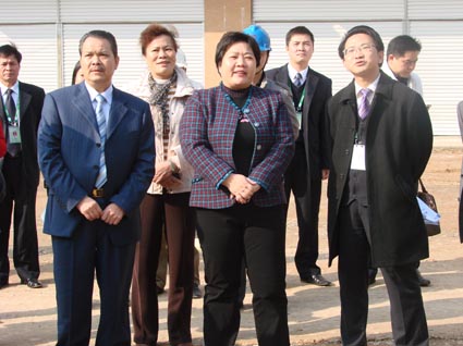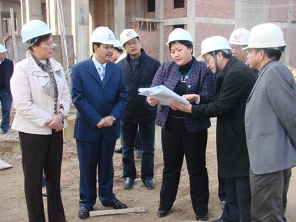 在项目建设现场,劳建铭向潘雪红汇报了工程进展情况:竞技宝竞猜•盛世名城项目总投资10亿元,占地近300亩,建筑面积近50万平方米。项目分三期开发,其中一期A区已于2009年9月交房,B区目前正在热销当中;二期工程建设正在积极筹备,力争今年春节动工建设。目前还设计修建长约600米、宽30米的竞技宝竞猜大道,自西向东穿越小区而过,道路建成后,将对小区品位的提升及商业开发起到极大的促进作用。