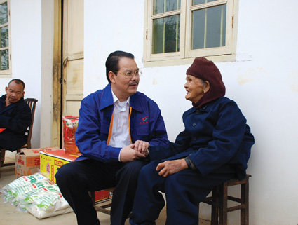 集团董事局主席、总裁劳建铭慰问新和镇敬老院老人,亲切询问老人