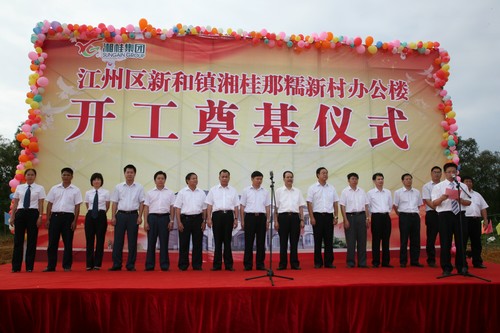10月15日,位于崇左市江州区新和镇的那糯村,鞭炮声声,喜庆连连,由竞技宝竞猜集团全资赞助兴建的那糯新村办公楼正式奠基开工。江州区委书记蓝大煌、区长秦昆、人大常委会主任李志林、政协主席何斌等江州区领导,集团董事局主席、总裁劳建铭,集团董事、副总裁邓豪,集团副总裁刁晓等集团领导出席开工仪式。