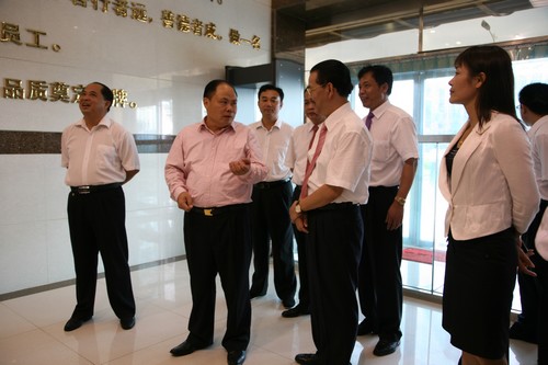 黄克一行首先参观了印证着竞技宝竞猜创业十周年的文化长廊,听取了关于十年发展的相关汇报,并深入到生产车间,看望慰问生产一线的职工,然后详细询问企业发展目前存在的问题和困难,并就集团下一步发展规划提出相关的意见和建议。