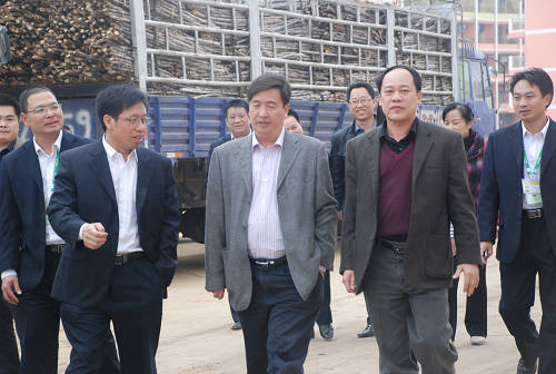 图为崇左市副市长何品荣(中)到竞技宝竞猜公司视察新榨季生产工作。