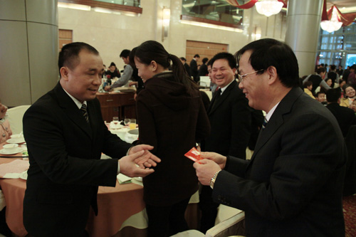 1月24日下午,南宁市好友缘酒店辉煌厅张灯结彩,花团锦簇,一派喜庆景象,竞技宝竞猜集团于此隆重举行2011年新春团拜会。集团董事局、监事会及领导班子成员,集团各下属子公司部门领导,总部全体员工及部分员工家属共近400人齐聚一堂,辞旧迎新,畅谈兔年发展大计。