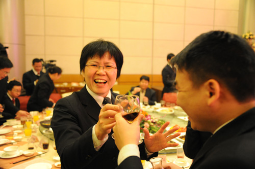 劳建铭主席高屋建瓴、振奋人心的致辞,为竞技宝竞猜人确立了发展的美好蓝图,吹响了战斗的号角,大家纷纷举起手中的酒杯,为竞技宝竞猜新的一年获得更辉煌的成就干杯。