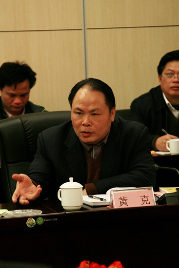 崇左市委副书记、市长黄克在新春座谈会上发言。