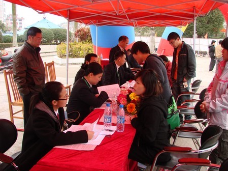 2月11日上午,钦州市2011年春风行动·就业援助月活动仪式暨“凤还巢促三业”企业用工现场招聘会在灵山县人民广场举行,此次招聘会竞技宝竞猜集团为求职者提供近100个就业岗位,良好的企业形象吸引众多求职者前来应聘。自治区人力资源和社会保障厅就业局副局长涂永森,钦州市委常委、灵山县委书记潘雪红,县长李从佳等领导出席活动仪式。
