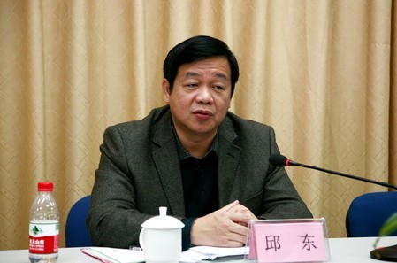 图为自治区工信委副主任、自治区糖业发展局局长邱东讲话。